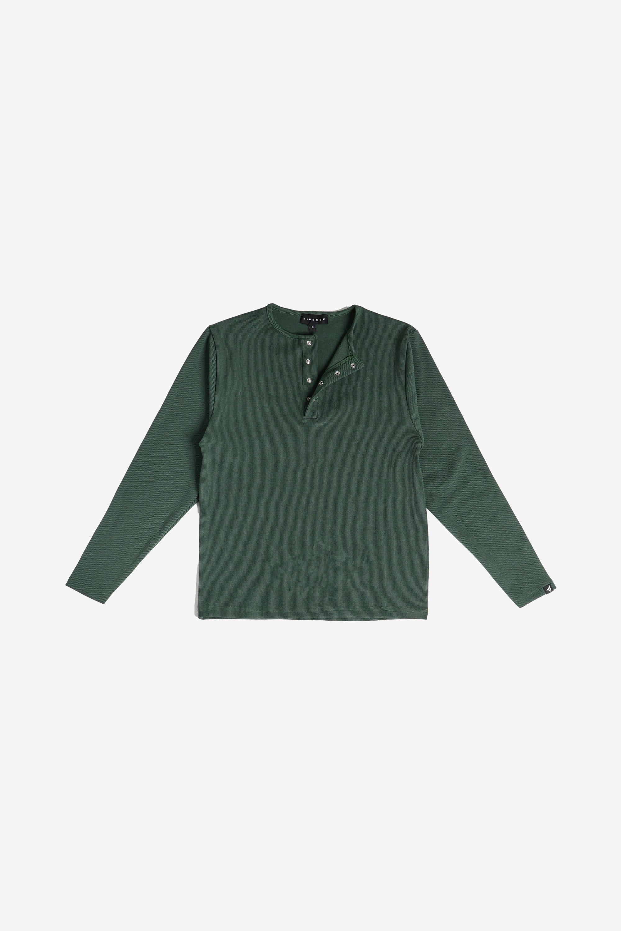 Designed for all-day wear, this ribbed Henley offers a smooth, breathable feel against the skin.